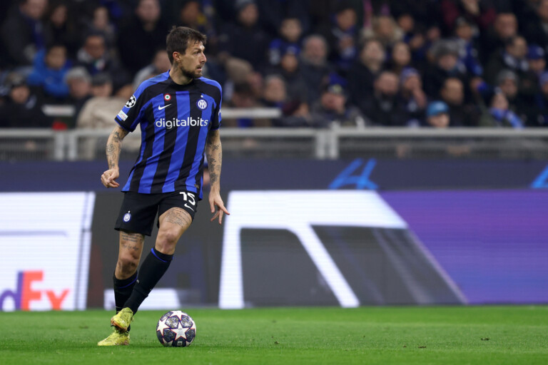Francesco Acerbi of Fc Internazionale during the Uefa Champions League round of 16 first leg match between Fc Internazionale and Fc Porto on February 22, 2023 in Milano Italy .