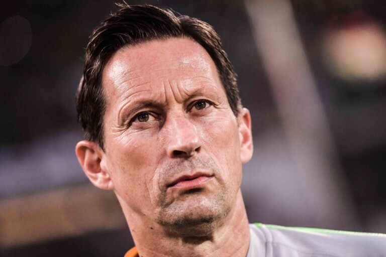 Head coach Roger Schmidt of Beijing Sinobo Guoan reacts as he watches his players competing against Beijing Renhe in their 18th round match during the 2019 Chinese Football Association Super League (CSL) in Beijing, China, 17 July 2019. Beijing Sinobo Guoan defeated Beijing Renhe 2-1.