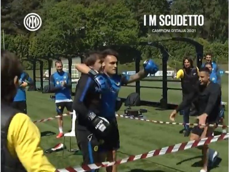 VIDEO – Conte e Lautaro, la seconda parte della “sfida di box”: esplode l’abbraccio finale