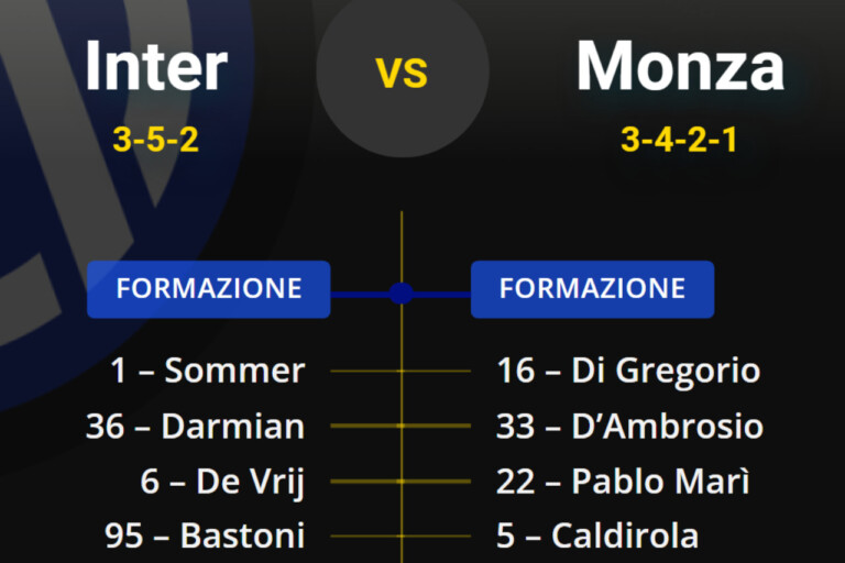 Inter che scenderà in campo con la formazione vista nelle ultime amichevoli, con i soli Sommer e Thuram come novità rispetto alla formazione della scorsa stagione. In difesa ci sarà De Vrij al posto dell’infortunato Acerbi. Solo panchina, dunque, per Frattesi e Cuadrado.