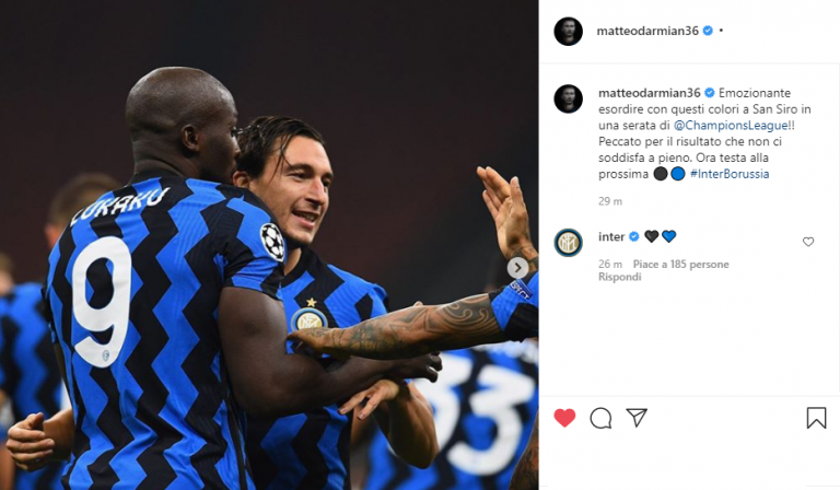 “Emozionante esordire con questi colori a San Siro in una serata di Champions League! Peccato per il risultato che non ci soddisfa a pieno. Ora testa alla prossima”. Con queste parole, attraverso un post sul suo profilo Instagram, Matteo Darmian ha commentato il suo esordio con la maglia dell’Inter. L’ex Parma, nonostante le numerose critiche ricevute ancor prima di scendere in campo, si è dimostrato un calciatore più che degno dell’importanza della serata, nonostante il compito di sostituire Hakimi non fosse esattamente dei più agevoli.