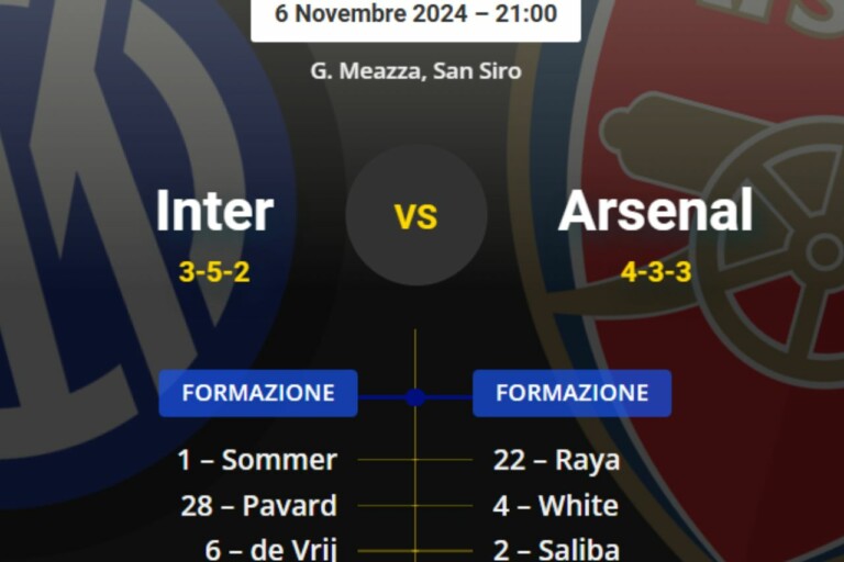 Tutto pronto a San Siro per il primo big match casalingo dell’Inter in Champions League. Dopo la sfida dell’Etihad Stadium all’esordio, i nerazzurri si trovano di fronte un’altra top della Premier League alla 4a giornata: l’Arsenal di Arteta, che però non sta vivendo un momento semplicissimo.