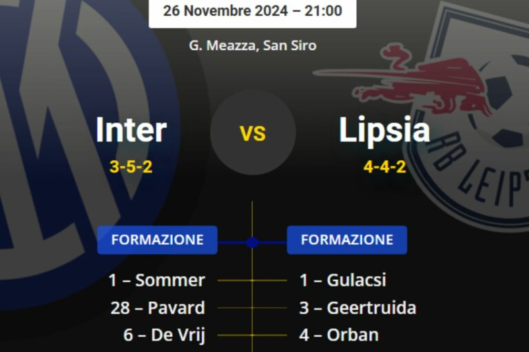 Dopo la grande vittoria contro l’Arsenal, l’Inter torna a giocare in Champions League e lo fa di nuovo a San Siro. Nella 5a giornata del girone, i nerazzurri affrontano il Lipsia, ancora a quota zero punti, con l’occasione di compiere un ulteriore balzo in avanti verso la qualificazione diretta agli ottavi di finale.