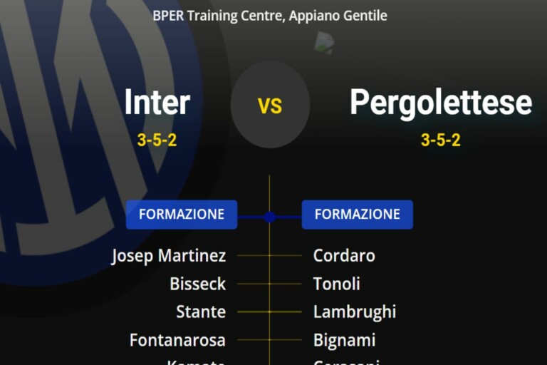 Lunedì 22 luglio, con fischio d’inizio alle 18.30, presso il BPER Training Centre si disputerà il secondo match di questo pre-campionato contro la Pergolettese, formazione che milita nel campionato di Serie C. Per quanto riguarda le scelte iniziali di Simone Inzaghi, che in avanti si affiderà ancora una volta alla coppia Taremi-Correa in virtù delle tante assenze, ci sarà grande curiosità intorno al nuovo acquisto Piotr Zielinski che dovrebbe disputare l’ultima mezz’ora di gioco.