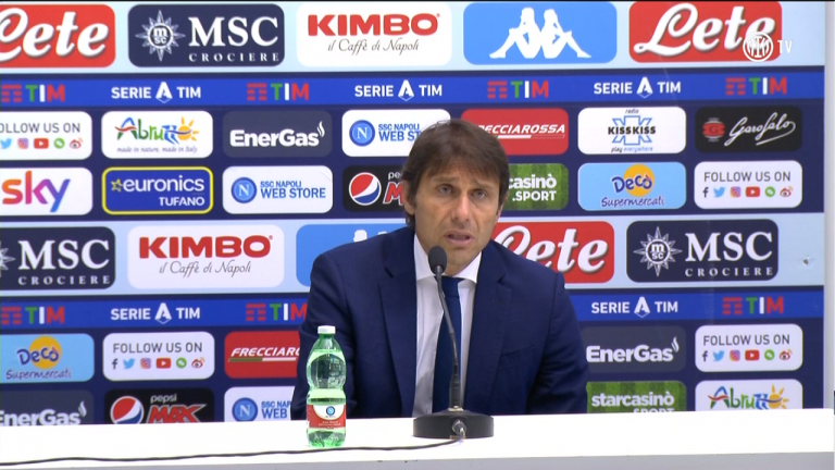 Napoli-Inter, Conte in conferenza: “Grande prova di forza. Eriksen? Merito di tutti. E sulla Superlega…”