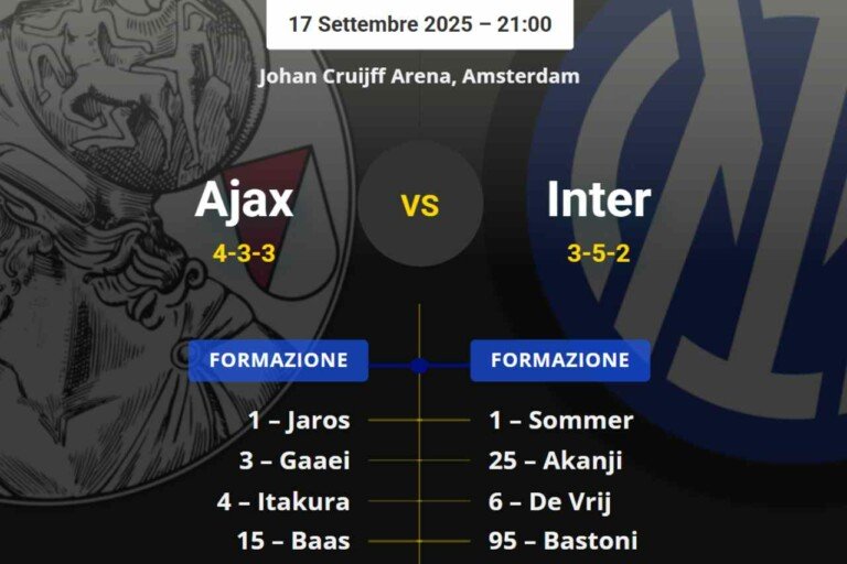 Ajax-Inter, formazioni UFFICIALI: SORPRESA a centrocampo