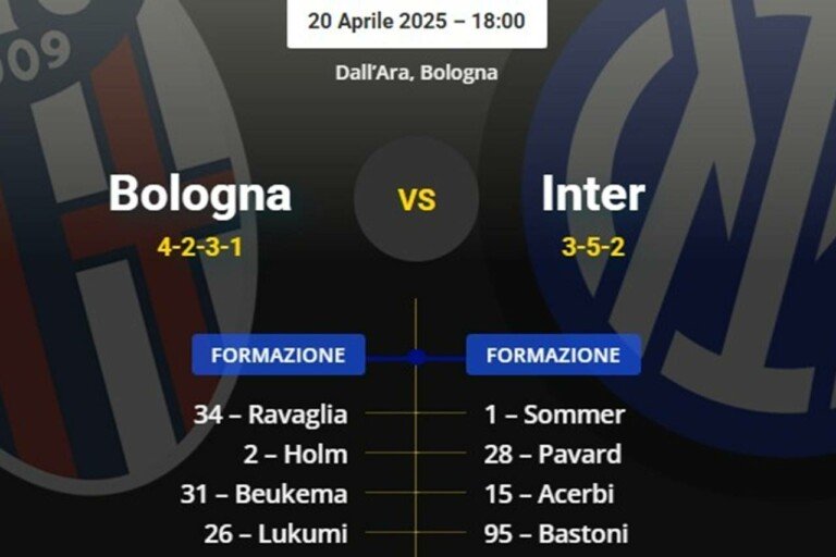 Queste le probabili formazioni di Bologna-Inter: