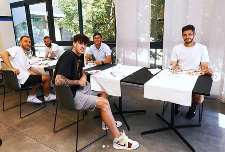 “Social distancing with a smile”, il primo pranzo insieme dei nerazzurri