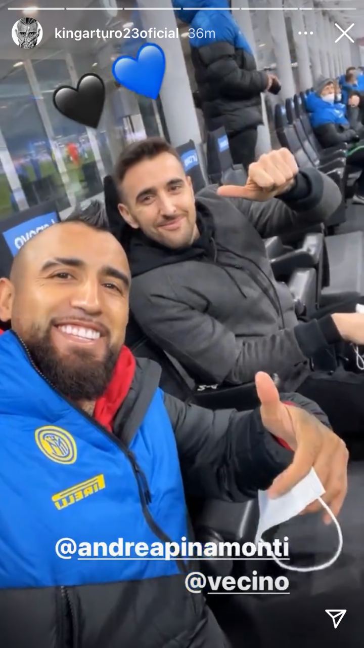Tifosi speciali a San Siro. Arturo Vidal, ai box per un problema muscolare, ha postato sui social una foto direttamente dalla panchina nerazzurra.