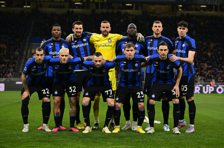 MILAN, ITALY - FEBRUARY 18: Players of FC Internazionale line up prior to the Serie A match between FC Internazionale and Udinese Calcio at Stadio Giuseppe Meazza on February 18, 2023 in Milan, Italy. (Photo by Mattia Ozbot - Inter/Inter via Getty Images)