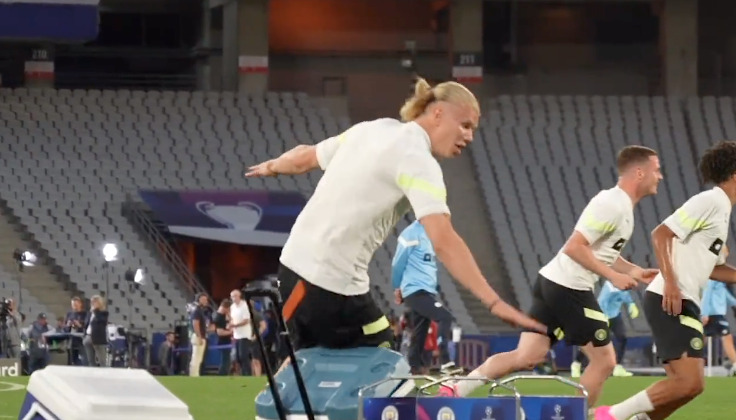 Piccolo incidente di percorso per Erling Haaland del Manchester City nell’allenamento di rifinitura a poche ore dalla finale di Champions League. Immortalato dalle telecamere, cade a terra inciampando con le borse-frigo dello staff. GUARDA IL VIDEO