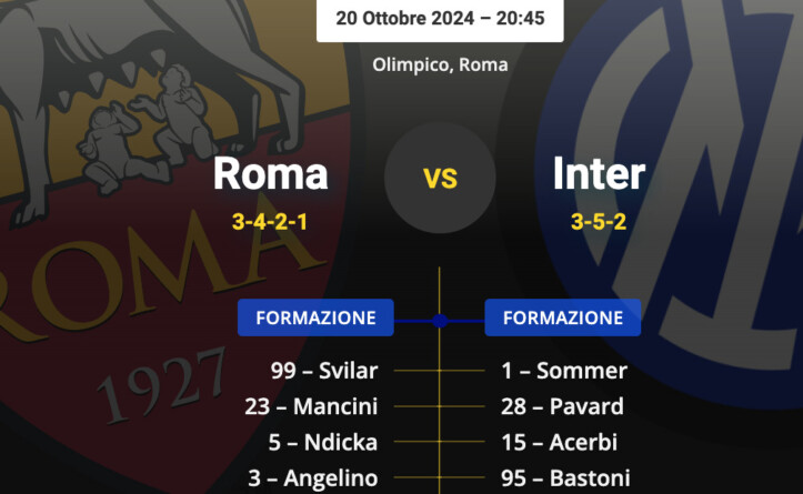 Le probabili formazioni di Roma-Inter: allarme centrocampo