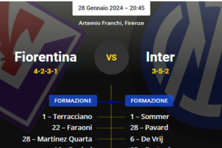 Fiorentina-Inter, le FORMAZIONI UFFICIALI: Inzaghi ne cambia 4